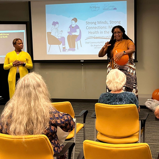 On October 23, 2025, we traveled to Partnership For Families, Children and Adults of Chattanooga we hosted a mental health workshop. The session brought together approximately 14 participants for meaningful discussion and hands-on activities focused on Deaf services, community connection, and shared learning.